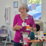 Elaine Adkins spends winters in Estero, Florida, and the rest of the year in Madison, Wisconsin, where she hosts the Madison Crankers. Her passion for fiber crafts began in childhood, leading her from traditional sock knitting with needles to using circular sock machines, including a Tru-Knit she received in 2023.